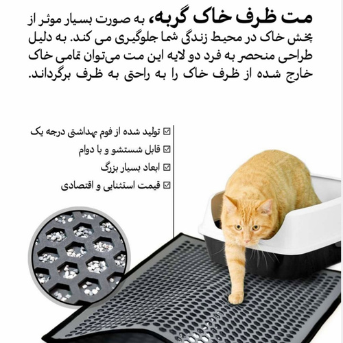 مت ظرف خاک گربه JUANIT از جنس پلاستیک محکم و با کیفیت بالا به صورت دو لایه ساخته شده تا علاوه بر جمع آوری خاک های چسبیده به پای حیوان خانگی شما از هدر رفت خاک گربه شما نیز جلوگیری کند . کیفیت مناسب این محصول به شما کمک میکند تا به راحتی در صورت نیاز آن را شستشو دهید